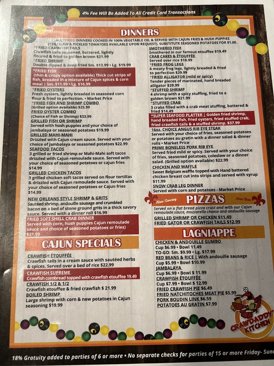 Don’t miss out on the Cajun Swamp Fries or the refreshing margaritas, adding a delightful twist to your dining experience. With quality ingredients and a welcoming vibe, Crawdaddy's Kitchen is a must-visit destination for a true taste of Louisiana.